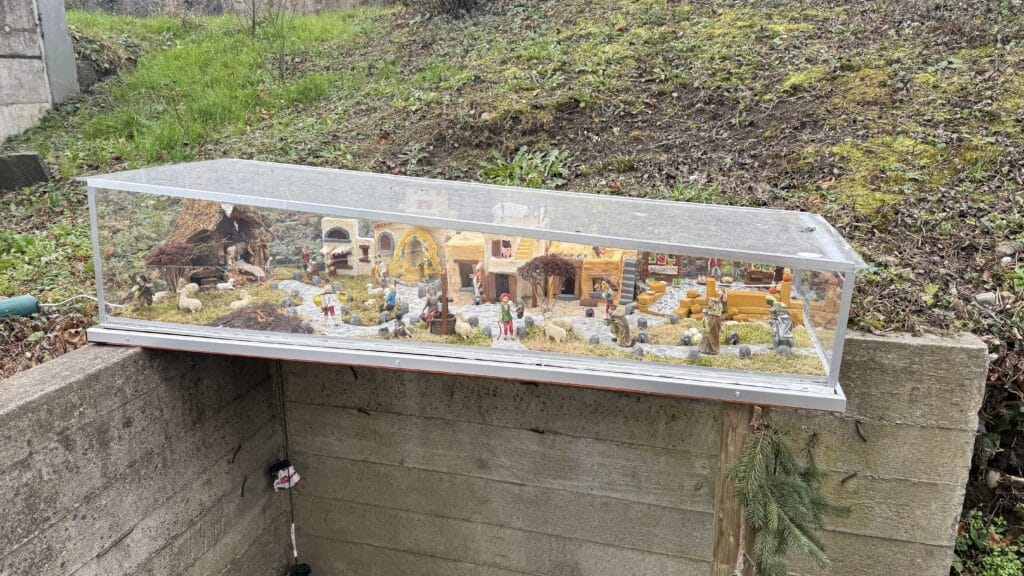 Bei uns im Quartier gibt es eine Krippe. Irgendjemand hat sie liebevoll und handwerklich geschickt vor einem Wohnblock platziert. Am Abend und in der Dunkelheit wird sie beleuchtet. Verkehrstechnisch liegst sie strategisch günstig zwischen dem Quartier-Coop und zentralem Kreisel und einem grossen Neubauprojekt. Für Laufkundschaft ist also gesorgt. Allerdings liegt die Krippe wie der Stall von Bethlehem ein wenig abseits. Der Fussweg und die Strasse liegen etwas höher, aber von oben kann man den Glaskasten, ind em die Krippe untergebracht ist, aber gut sehen. Und mancher, ich gebe zu ich rechne mich dazu, wird neugierig geht hin und schaut sich das mal an. Krippenspieltechnisch wird man also quasi zum neugierigen Hirten (den Engel und die himmlischen Heerscharen muss man hier mit der erwachten Neugier identifizieren) oder auch zum Heiligen König, wenn man mit der gefüllten Einkaufstüte vom Coop heimkehrt und quasi mit Geschenken vor die Krippe tritt (und nein, bevor jemand fragt, unser Quartiercoop führt kein Gold, keinen Weihrauch und keine Myrrhe im Angebot – es sei denn es sind Aktionswochen 😁). Ich habe jetzt immer mal darauf geachtet, ob Leute stehenbleiben. Und tatsächlich, es sind recht viele, die stehenbleiben, hingehen, gucken. Alte, Junge, Eltern mit ihren Kindern. Und wenn die Leute wieder auf den Weg zurückkehren und ihren Weg fortsetzen, tun sie dies meistens mit einem Schmunzeln oder einem etwas fröhlicheren Gesicht. So stelle ich mir Weihnachten vor. Als eine ermutigende, fröhlichmachende Botschaft, die mitgeht auf unseren Wegen, in unseren Alltag. Die nicht wie die Festtagsdekoration abgeräumt wird, sondern bleibt und mitgeht. Und während an der Strasse schon die Christbäume für die Grünabfuhr bereitgelegt sind, steht die Krippe im Quartier immer noch. Auch der Adventskalender bleibt noch einen Tag. Mit dem morgigen Epiphaniastag werden wir unsere kleine Reise durch den Advent und den Weihnachtsfestkreis beenden.